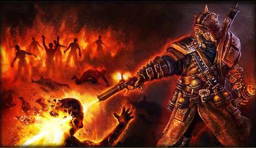 Pyrotechnic masters of the imperial army, Demolitionists are part engineer, part sorcerer. They were used to break enemy ranks and breach fortifications with their devastating array of explosives and destructive magic. They usually prefer to fight at range, engaging enemies with guns, traps and explosives but they can also be proficient with melee weapons.